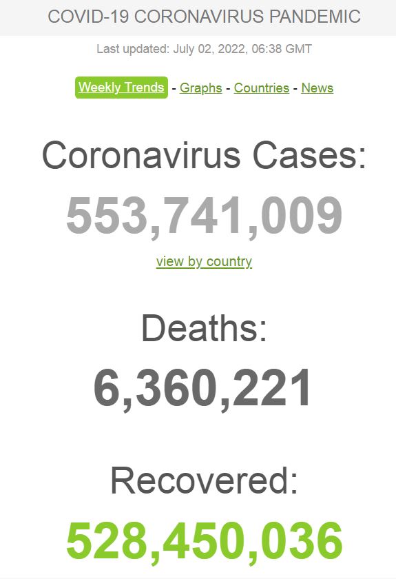 Alle ore 9,35 del 2 luglio 2022 Worldmeter stima così la popolazione mondiale.